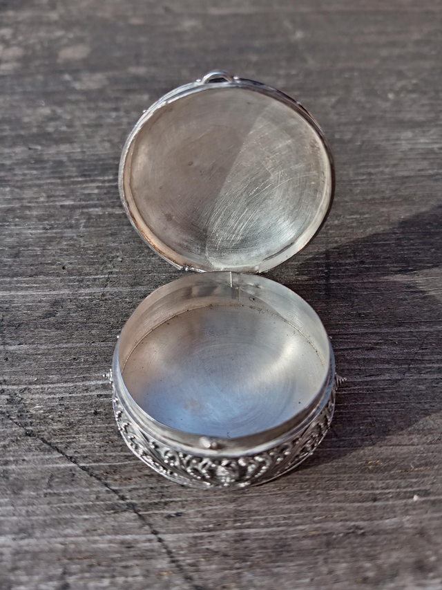 Burmese Ornate style sterling silver Pil Box c1970 hallmark 925