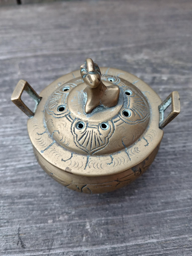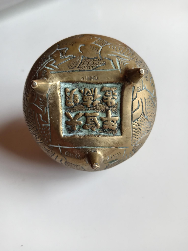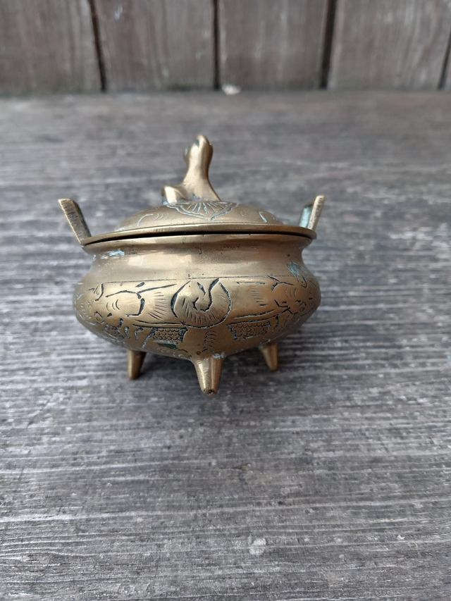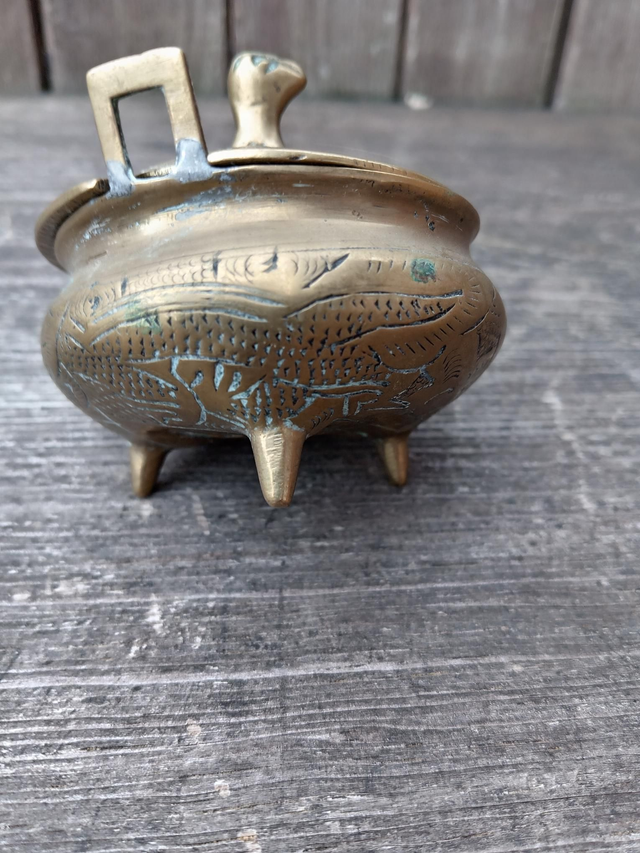 Beautiful Antique Chinese Censor. Lovely engraved patterns with 3d sculpted shape to the top of the lid. The body stands on 3 legs