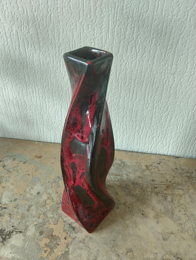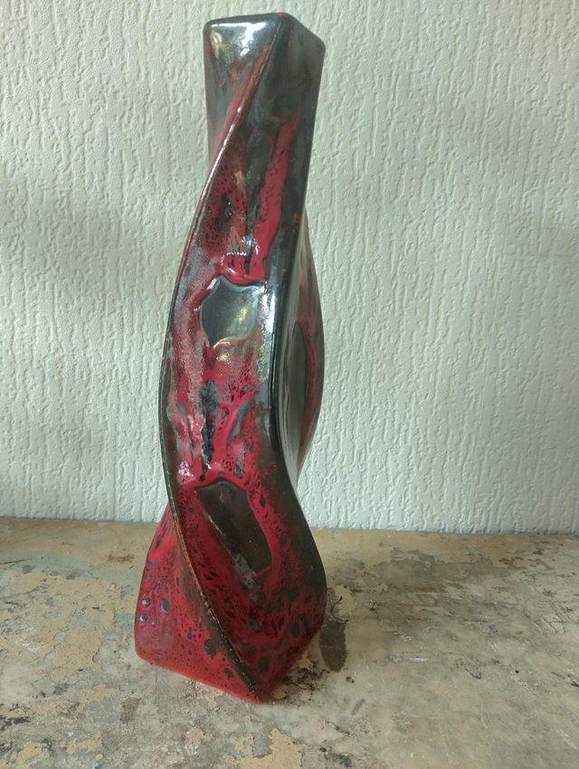 Here we have an outstanding example of a contemporary style art pottery vase. Tall, slim and artistically twisted which adds another dimension to it's appeal