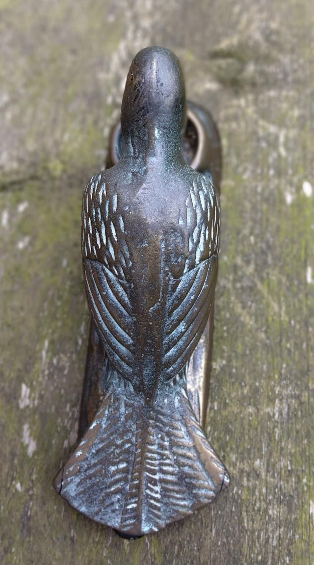 A vintage, solid brass Woodpecker door knocker. Showing great patination. A very unusual item, in many ways the perfect "door knocker"
