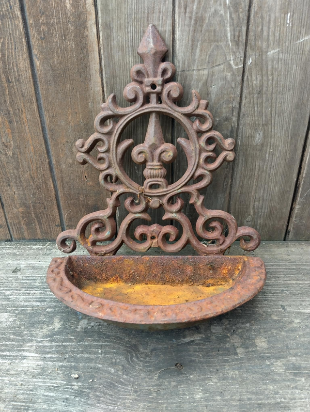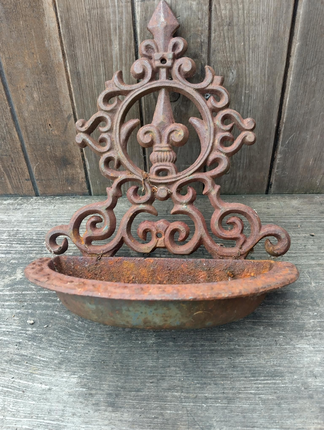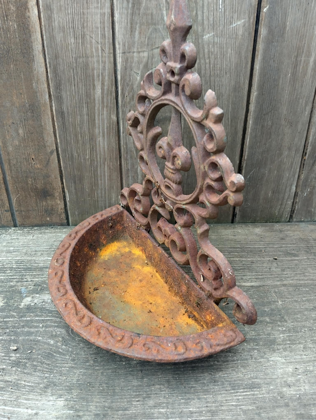 A lovely adornment to your garden. This vintage cast iron hanging bird bath.