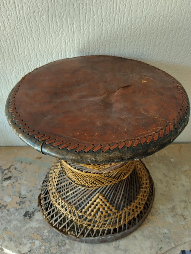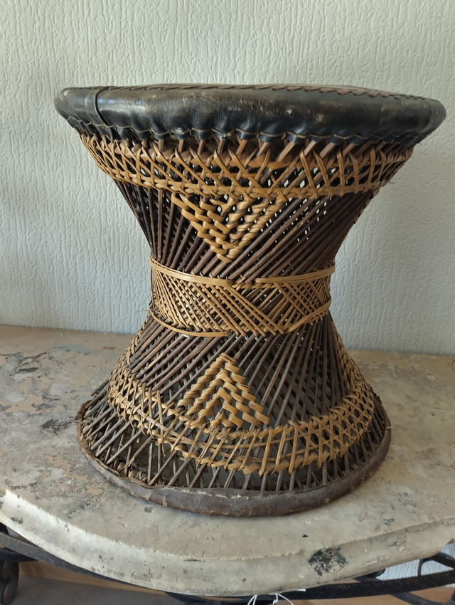 On offer here is a vintage Ethnic cane and leather topped stool.