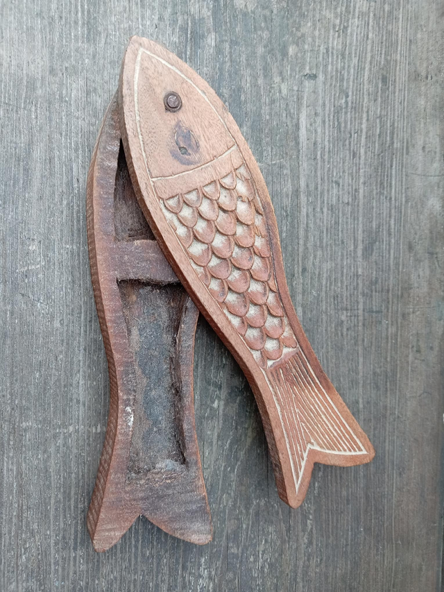Vintage Wooden Hand Carved Fish Trinket Box With Swing Open Lid